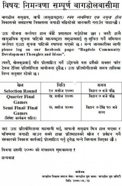 Rajan Khadka RIGHT TO INFORMATION!यस्ता सूचना पाटिहरु बागडोलभित्रका ठाउँ ठाउँमा बन्दैछन् र अबका दिनमा कुनै पनि संघ संस्था वा राज्यबाट यस समुदायलाइ लक्षित गरि हुने गतिबिधिहरुको जानकारी र हर हिसाब किताब एस पाटि …