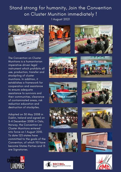 Ban Landmines Campaign Nepal (NCBL) Ban Landmines Campaign Nepal release a poster recalling its 11 years activities to ban on cluster munition and urging the government to join the Convention on Cluster Munition.