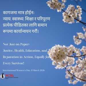 Ban Landmines Campaign Nepal (NCBL) International Women's Day, 8 March 2026 कागजमा मात्र होईनः न्याय, स्वास्थ्य, शिक्षा र परिपूरण प्रत्येक पीडितका लागि समान रूपमा कार्यान्वयन गरौं। Not Just on Paper: Justice, Health, Education, and Reparation in Action, Equally for Every …