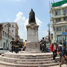 Mandala Network The statue of Juddha Samsher at the westernmost roundabout of new road is undamaged by the quake.