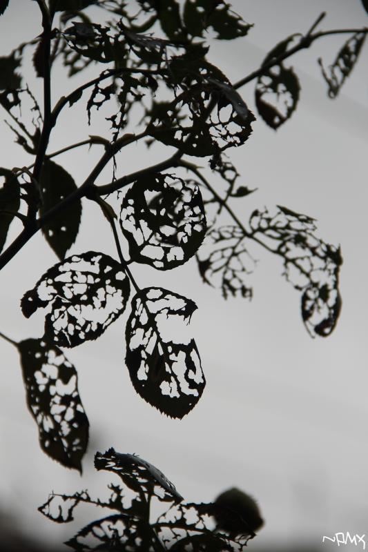 Rainy day with a Caterpillar's art work in a Rose Petals... loved the Patterns seen in the Petals of the Rose Plant...
