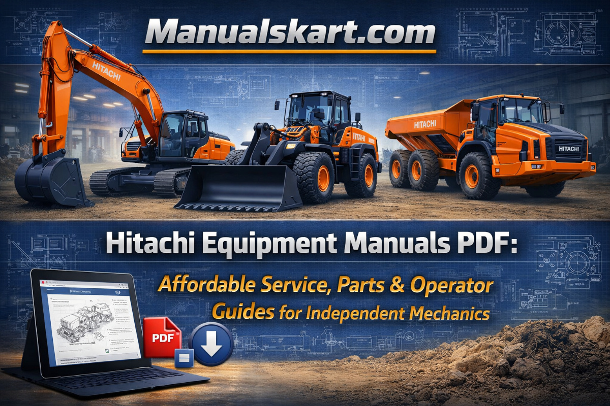 Get started on your next Hitachi repair with confidence—head to Manualskart.com for instant downloads of Hitachi service repair manuals, parts catalogs, operator guides, and extensive coverage for Caterpillar, John Deere, Komatsu, Volvo, Case, New Holland, Kubota, and many more brands. Keep your fleet strong and your costs low.